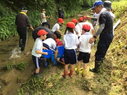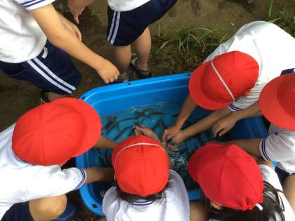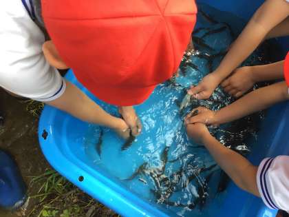 川の水で、自分の手を冷やしてから稚鮎に触ってみました。