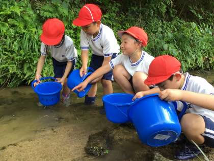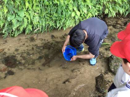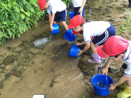 元気に川を泳ぐ稚鮎に、子どもたちも大喜びでした。