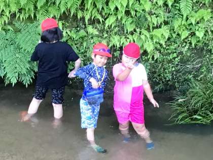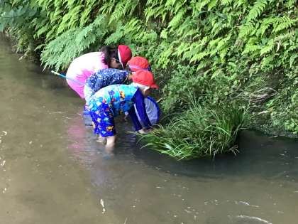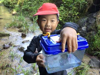 川の端をガサガサしたら、魚を捕まえることができました。