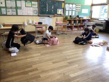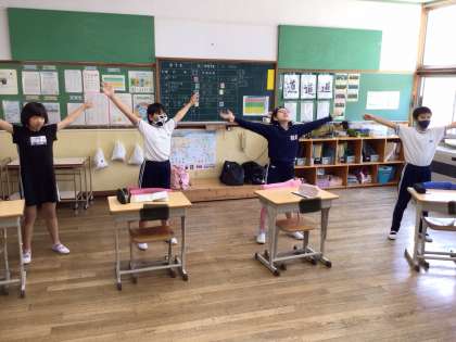 荷物点検の後は、2日目の朝に行う「ラジオ体操」の練習をしました。