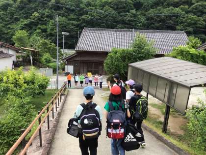 校庭で元気よく「行ってきます!」と挨拶をして、出発しました。