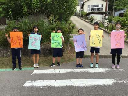 いつも一緒に活動している6年生からの「行ってらっしゃい!」の応答がなく、ちょっぴり淋しい気持ちで出発した5年生の前に突然現れた6年生。
