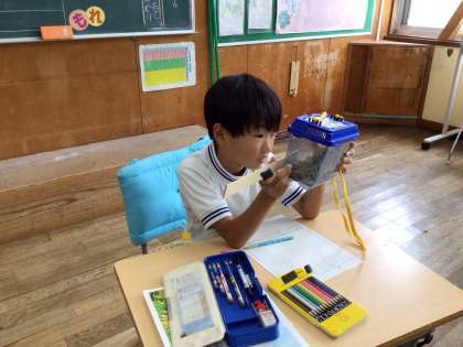 先週捕まえた生き物の観察をしていました。