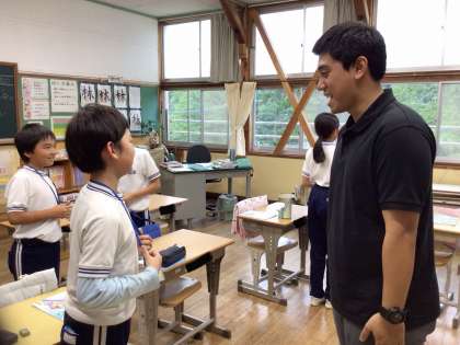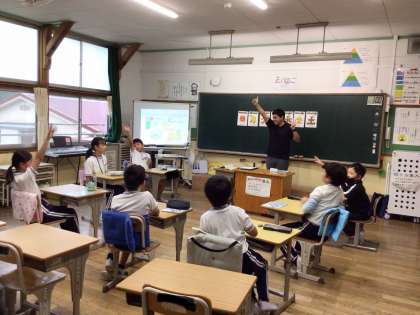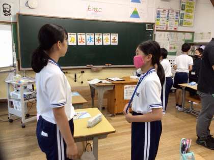 友だちやALTの先生と、英語を使って楽しくコミュニケーションをとっていました。