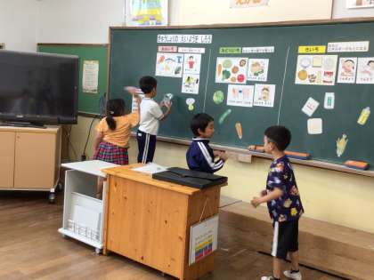 今日の給食の食材のグループ分けにも挑戦しました。