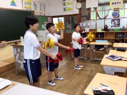 6年生が運動会の応援合戦の準備を始めています。