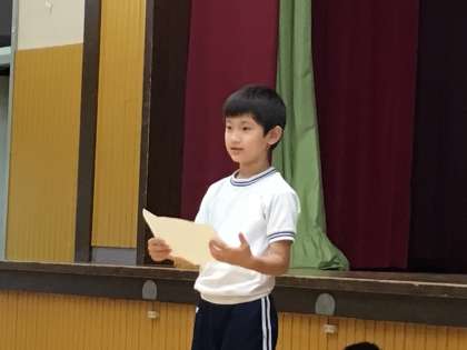 全校集会 3年生スピーチ 公開日 2024/07/01 更新日 2024/07/01 学校の特色ある活動 引き続きの3年生スピーチがありました。 これまで同様、自分自身のことについて書いた説明文を使ってスピーチしました。 自分を一言で表すと・・・ 3年生のスピーチを聞きながら、自分自身のことを考えた子どももいたのではないでしょうか。 今日で3年生のスピーチは終わりです。 とても上手に伝えることができました。