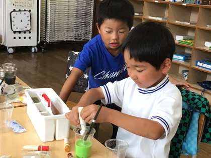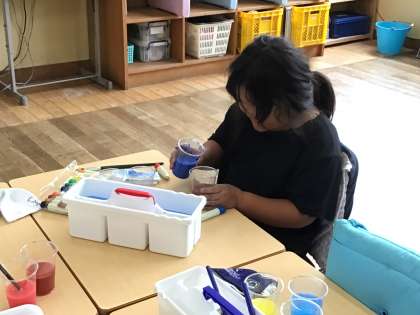 楽しく色水をつくっていました。