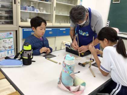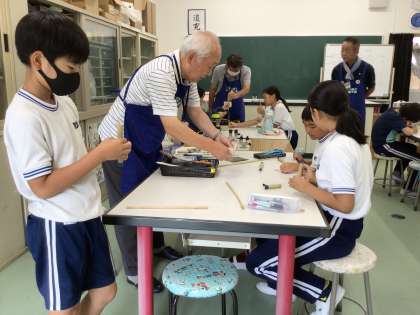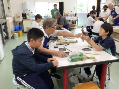 ものづくりサポーターの皆さんに来ていただいて、竹を使った空気鉄砲作りに取り組みました。