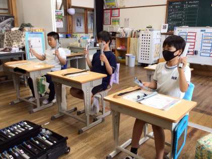 リコーダーの練習の後、トーンチャイムを演奏していました。
