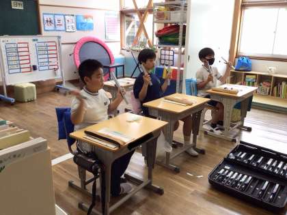 昨年度の学芸会でも素晴らしい音色を響かせた子どもたちなので、トーンチャイムの扱いは手慣れたものです。