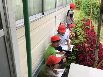 つるがずいぶん伸びて、子どもたちの身長より高くなっていました。