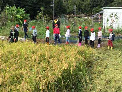 暑さが厳しい中でしたが、首を垂れた黄金色の稲穂を機械と鎌で刈り取りました。