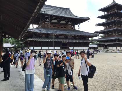 法隆寺 公開日 2024/09/12 更新日 2024/09/12 学校行事 五重塔や大講堂、金堂を見学しました。 宝物館では、玉虫厨子や夢違い観音を見ました。 暑かったのですが夢殿まで歩き、聖徳太子の等身大の救世観音像も見ました。