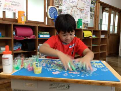 2年生 図画工作「とろとろえのぐで」1 公開日 2024/09/18 更新日 2024/09/18 各学年から とろとろな絵の具を作って絵を描いていました。 指や手を使って、思いのままに描いていました。