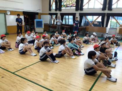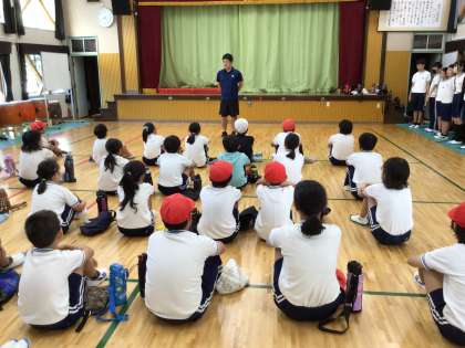 はじめに、運動会担当の先生から、暑い中での練習では無理をせず、いつもと違う時は近くの先生に声をかけるよう話がありました。