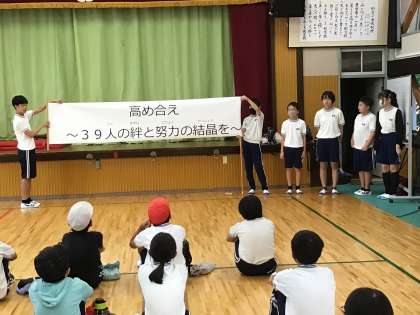 次に、6年生から運動会のスローガンが発表されました。