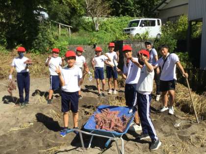 芋掘り 公開日 2024/09/20 更新日 2024/09/20 特色ある学校づくり推進事業 5・6年生が芋掘りをしました。 さすが高学年の手際の良さで、次々とサツマイモを掘り出しました。 昨日の芋掘り分も合わせて、畑では大小取り混ぜて260個くらいの収穫がありました。 校庭の花壇にもまだ残っているので、それも合わせると300個くらいの収穫になるかもしれません。 しばらくねかせた後、みんなで美味しくいただきたいと思います。 特色ある学校づくり