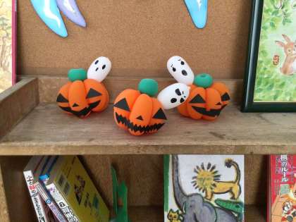 校舎2階の図書コーナーに、新しいバルーン飾りが置かれました。