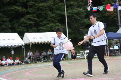 お父さん、お母さんと力を合わせての競技です。
