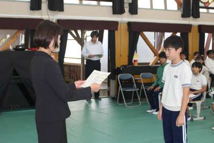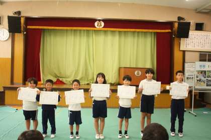 まごころ賞の表彰を行いました。 夏休み作品で優秀な成績を収めた子どもの表彰伝達も行いました。 おめでとうございます。