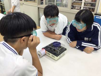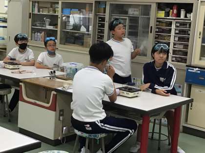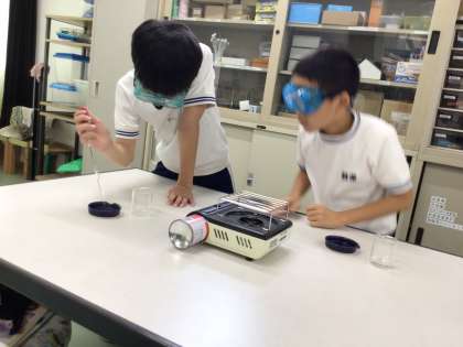 スポイトで水溶液をシャーレに移し、それを熱していました。
