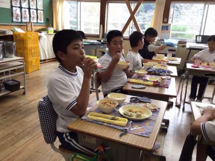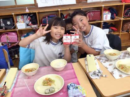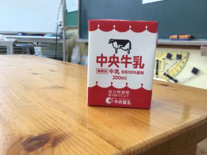 4年生教室では、パッケージに描かれている牛の模様が、愛知県の形になっていると教えてくれました。