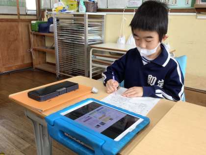 スーパーマーケットの見学で見つけたものや働いている人の工夫について、壁新聞にまとめようとしていました。