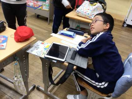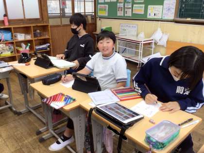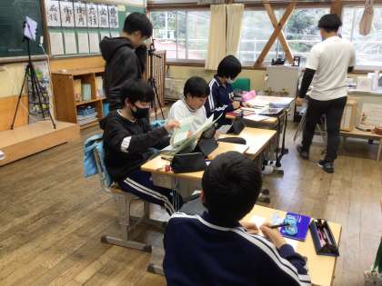 1年生から綴ってきた一行詩ファイルを見返して、言葉にこだわるようになった自分自身の成長にも気づいた6年生です。