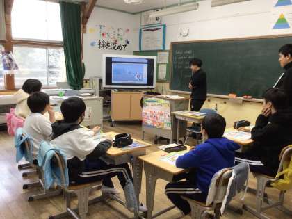 子どもたちは「global warming」と「animals」の関係を調べていました。