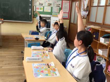 ハート形などは分かりやすいのですが、円や正方形、三角形、長方形などの英語表現は馴染みもないので、クイズをしながら覚えようとしていました。