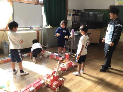 箱が増えたので、さらに大きい部屋を作ろうとみんなで相談しながら進めていました。