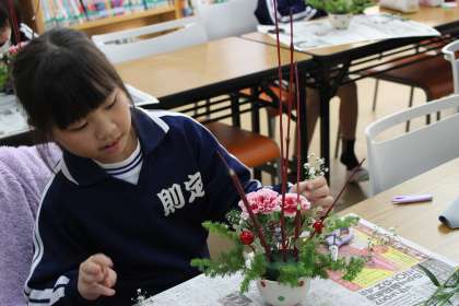 文化クラブは、地域の方を講師に、フラワーアレンジメントに取り組みました。