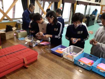 机を並べたり、色紙を分けたりしました。