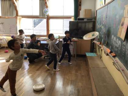 工夫を凝らしたおもちゃに、1年生も夢中で遊んでいました。