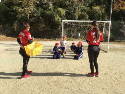 トヨタ自動車女子ソフトボール部「レッドテリアーズ」から、石川恭子選手、高島歩選手をお迎えし、ボールの投げ方を教えてもらいました。