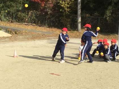 遠くへ投げるコツを教えてもらい、少しずつ上手く投げることができるようになりました。