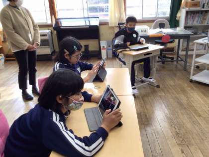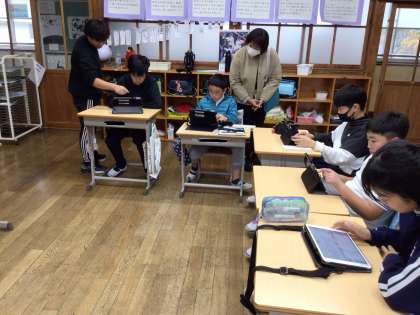 ICT支援の先生に来ていただき、全学年1時間ずつ、ICTのスキルアップをねらった授業をしました。