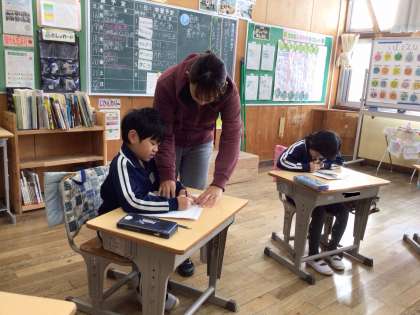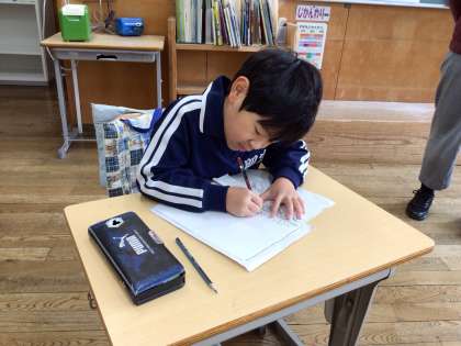 納得のいく文字を書くために、手本を見る目も真剣です。