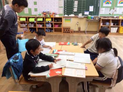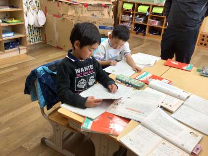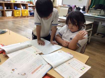 書いた文章をお互いに読み合って、文字や表記上の間違いをチェックしていました。