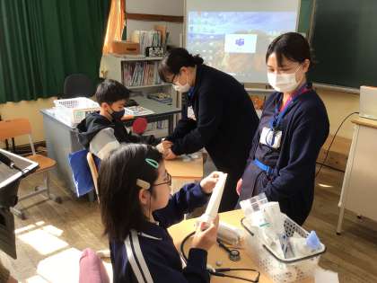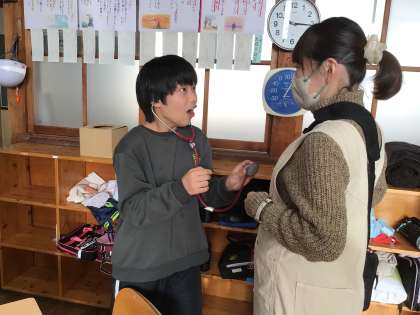 また、院内で使っている医療器具で心臓の鼓動を聞いたり、絆創膏の貼り方を教わったりしました。
