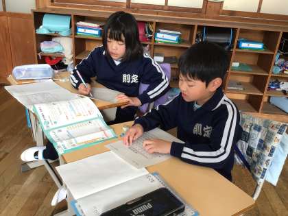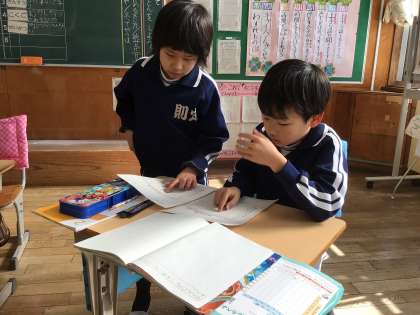 ペアで見直しをしたり、みんなでもう一度九九を唱えたりしていました。