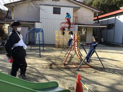 風は冷たくても、子どもたちは元気いっぱいです。