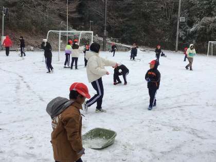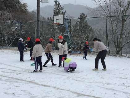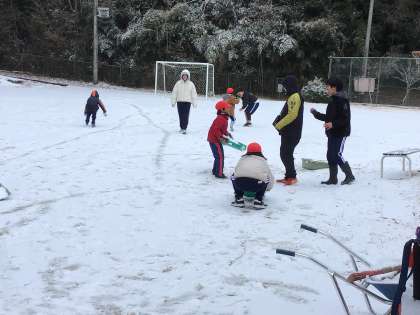 子どもたちは授業どころではない様子で、早速、運動場に集まっていました。