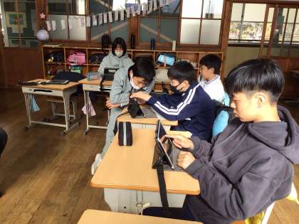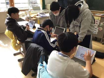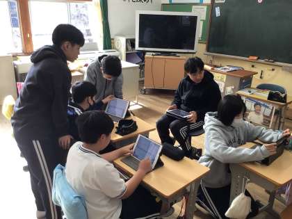 6年生にもなるとタブレットの操作も速く、みんなで相談しながら次々につくっていました。