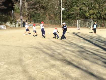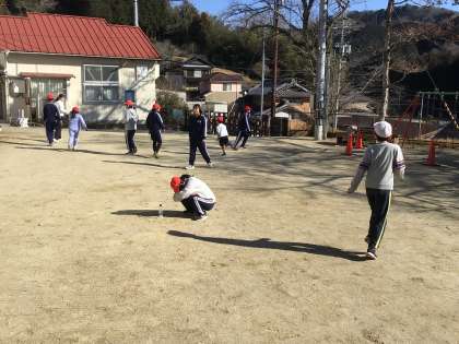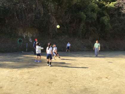 校庭では「缶けり」ではなく「ペットボトルけり」、運動場ではサッカーやバレーボールで体を動かしていました。
