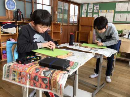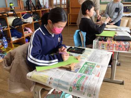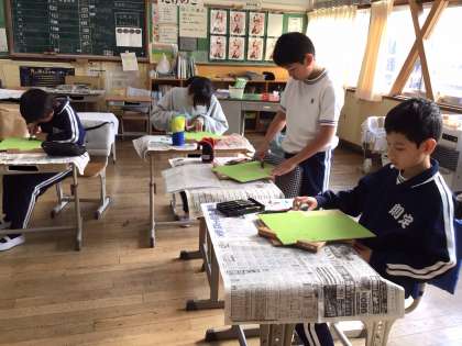 思い思いの動物をモチーフに、いろいろな彫り方で作品を作っていました。