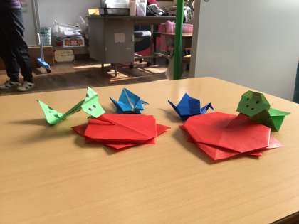 今年の干支であるヘビやおめでたい鶴などを折っていました。