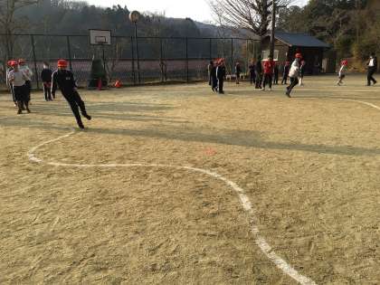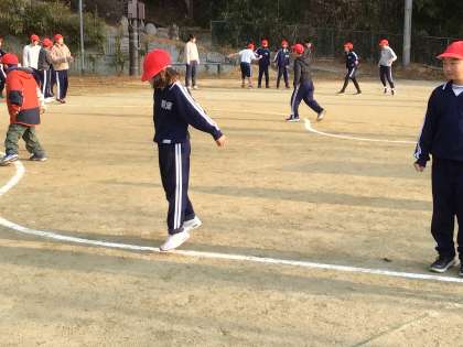 3年生から6年生は、運動場でリズムに合わせての跳躍運動と短縄跳びをしました。