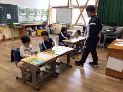 避難訓練を振り返っていました。